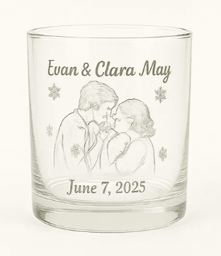 Celebrate your love story with our Couples Wedding Memory Glass, a beautifully crafted whiskey cup that’s as unique as your relationship! Made right here in the USA and featuring stunning laser engraving, this cup is perfect for toasting to special moments, anniversaries, or just enjoying a quiet evening together. Whether you’re gifting it to newlyweds or treating yourselves, this personalized keepsake is sure to become a cherished addition to any couple’s collection!