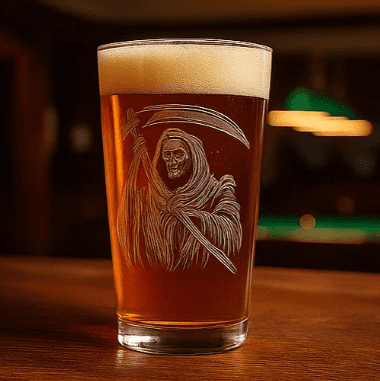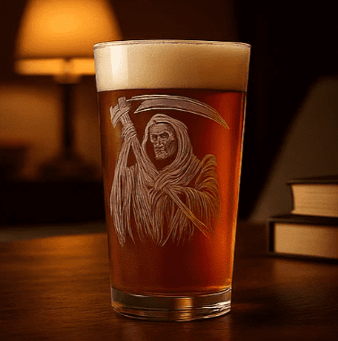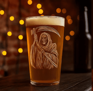 Introducing the Grim Reaper Halloween Pint Beer Glass Hi Ball Cup, a uniquely crafted vessel perfect for celebrating the spooky season. Proudly made in the USA, this high-quality glass features an intricately designed Grim Reaper motif, making it an ideal addition to your Halloween festivities or as a collector’s item for enthusiasts. Elevate your beverage experience with this striking piece that seamlessly combines functionality and festive flair.