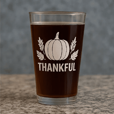 Get ready to celebrate Thanksgiving in style with our Thankful Pumpkin Pint Glass! This charming high ball cup features a festive pumpkin design that’s perfect for sipping your favorite seasonal drinks, whether it’s a cozy cider or a refreshing beer. Made from durable glass, it’s not just a treat for your eyes but also a practical addition to your holiday gatherings!